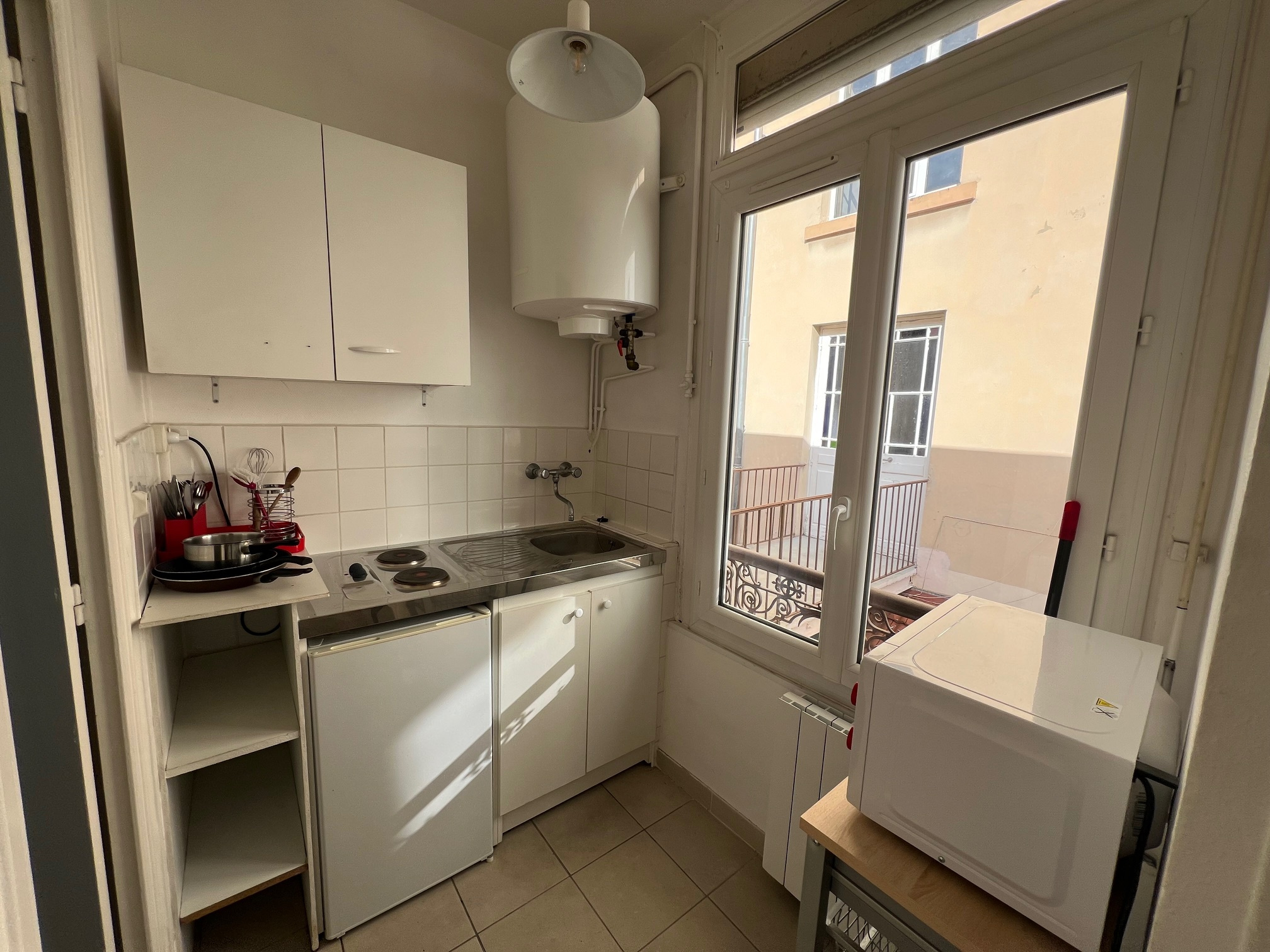 96 Rue des Charmettes à Lyon 6; dans un immeuble ancien au 1er étage, studio meublé de 17.60 m2 comprenant une pièce avec coin couchage et bureau; 1 cuisine séparée et équipée; 1 salle de bains avec douche et toilettes. Bien soumis à l'encadrement des loyers.